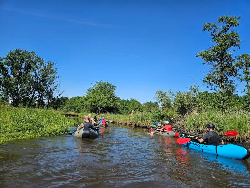 👉 Packrafts klaar, fietsen erop… en het water op.